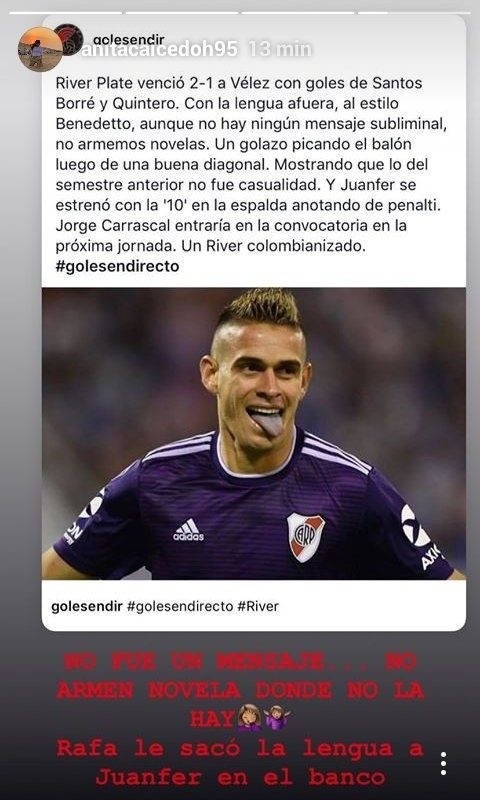 Ana caicedo, es periodista y está casada con rafael santos borré, el delantero de river que ayer vio la roja a dos minutos del final del partido.